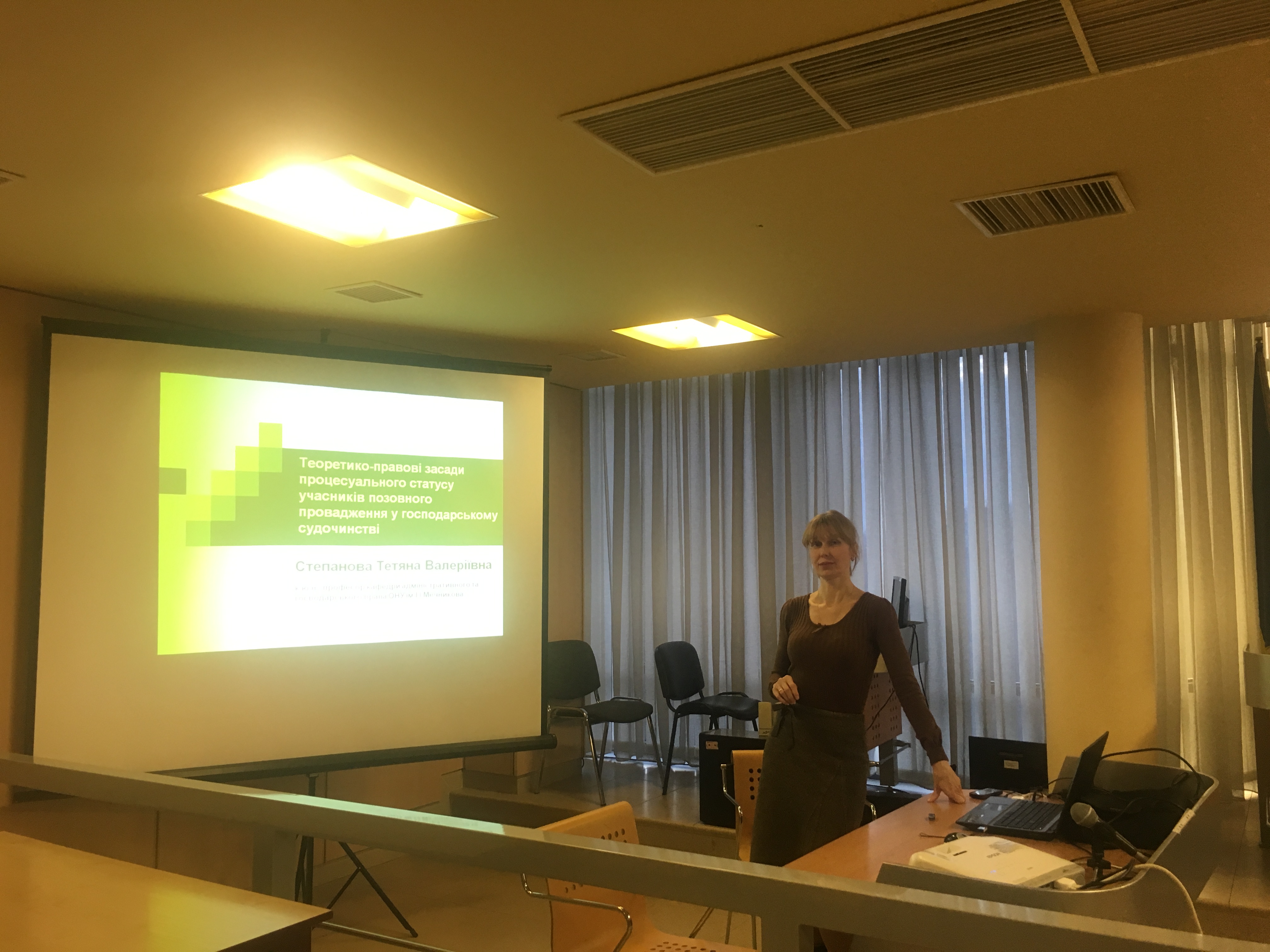 Крім цього, під час зустрічі професор ОНУ імені І.І. Мечникова доповіла присутнім новели господарського процесуального кодексу. Доповідь була побудована у формі діалогу з використанням презентації Power Point. В ході доповіді між суддями та науковцем виникла жвава дискусія стосовно змін у процесуальному законодавстві.