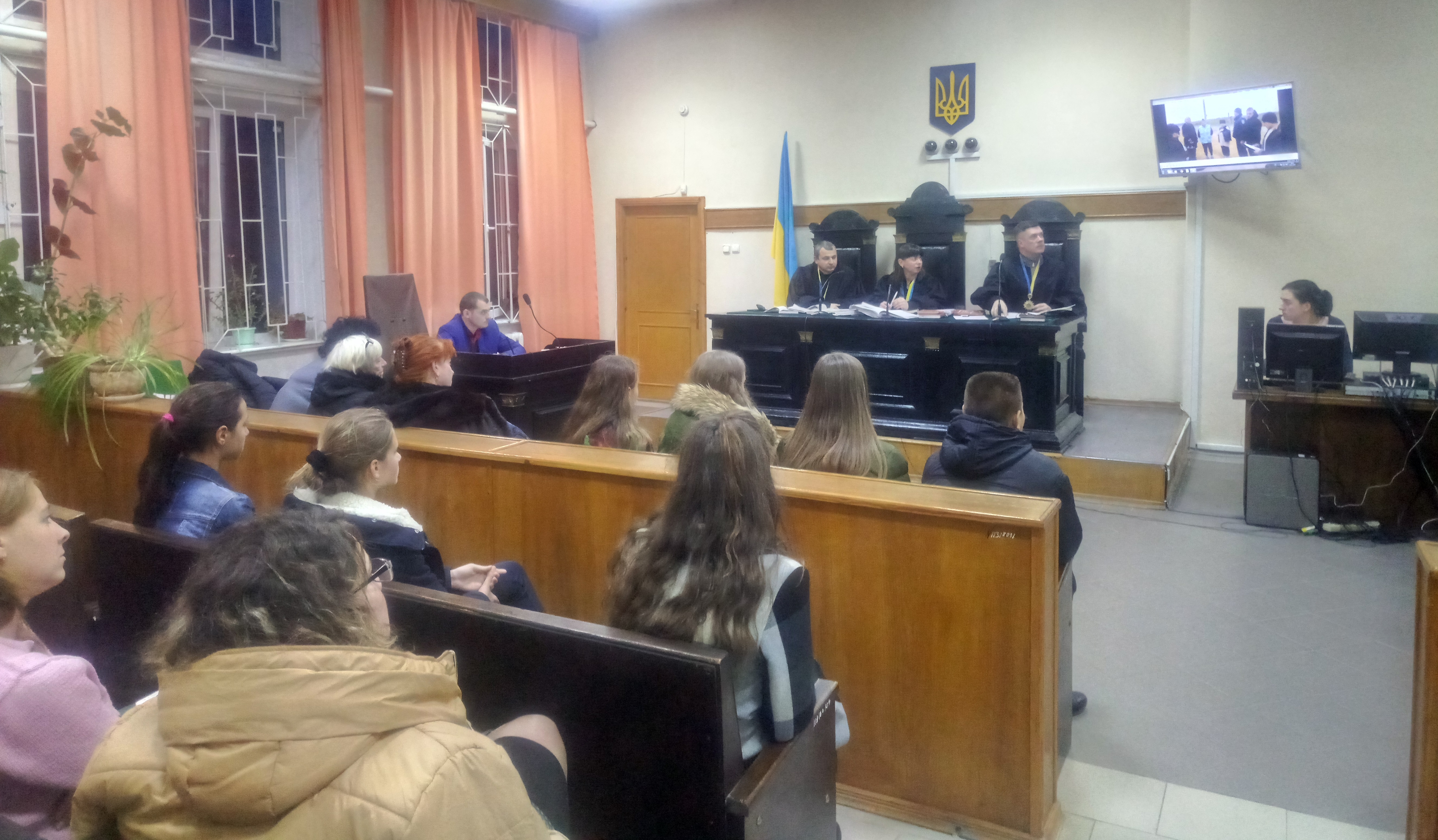 Школярі були присутні в судовому засіданні з розгляду кримінального провадження за обвинуваченням громадян Н.,Ф., які на час інкримінованого їм кримінального правопорушення були неповнолітніми, та громадянина М., які обвинувачуються у скоєнні розбійного нападу на громадянку Н., 1947 р.н.