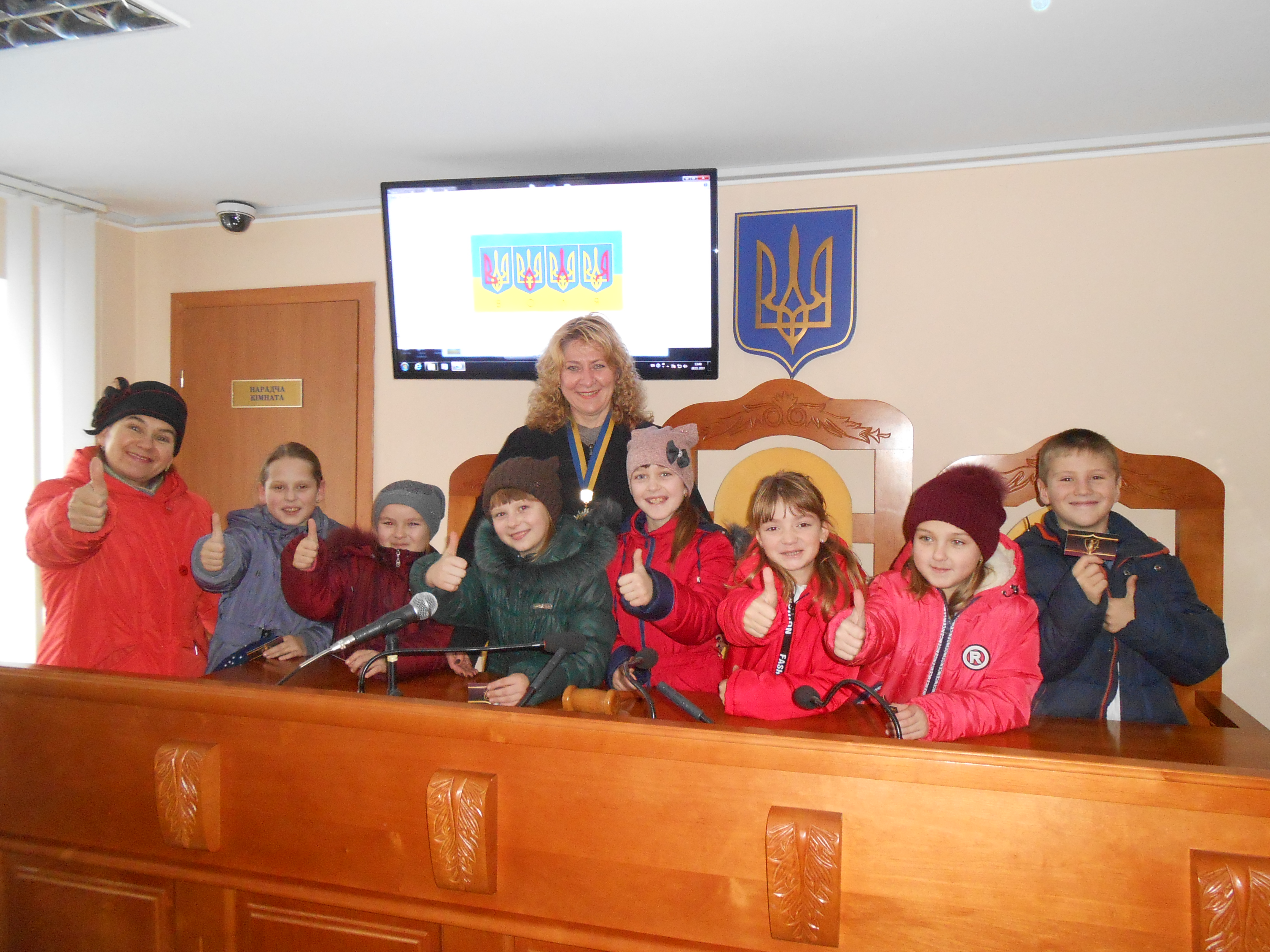 Діти із задоволенням фотографувалися в залі судового засідання та приміщенні суду, в мантії та з нагрудним знаком.