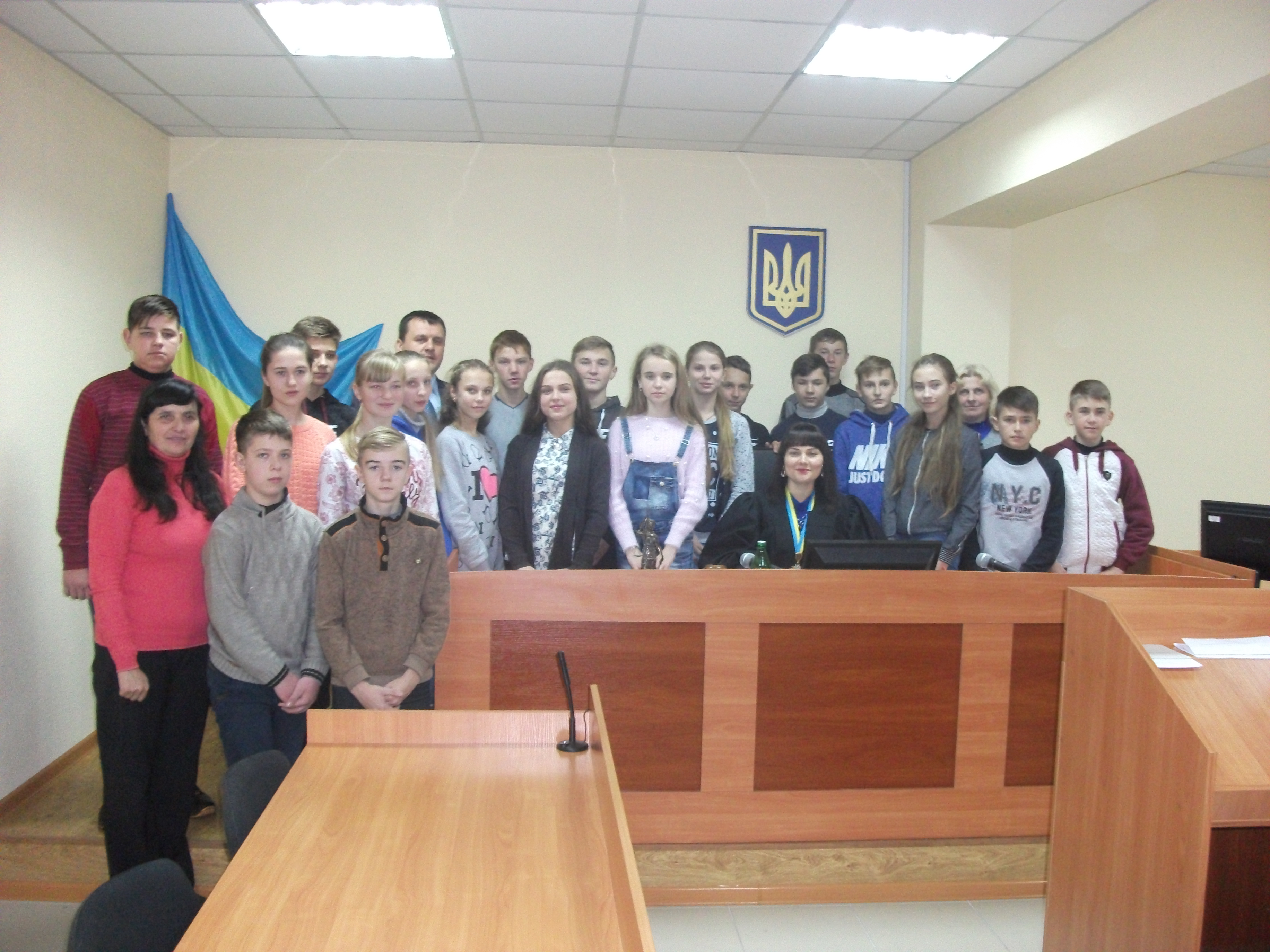 З метою вдосконалення правової свідомості, було забезпечено присутність учнів у судовому засіданні під час розгляду модельної справи про адміністративне правопорушення, проведення якого було підготовлено з участь працівників апарату суду.