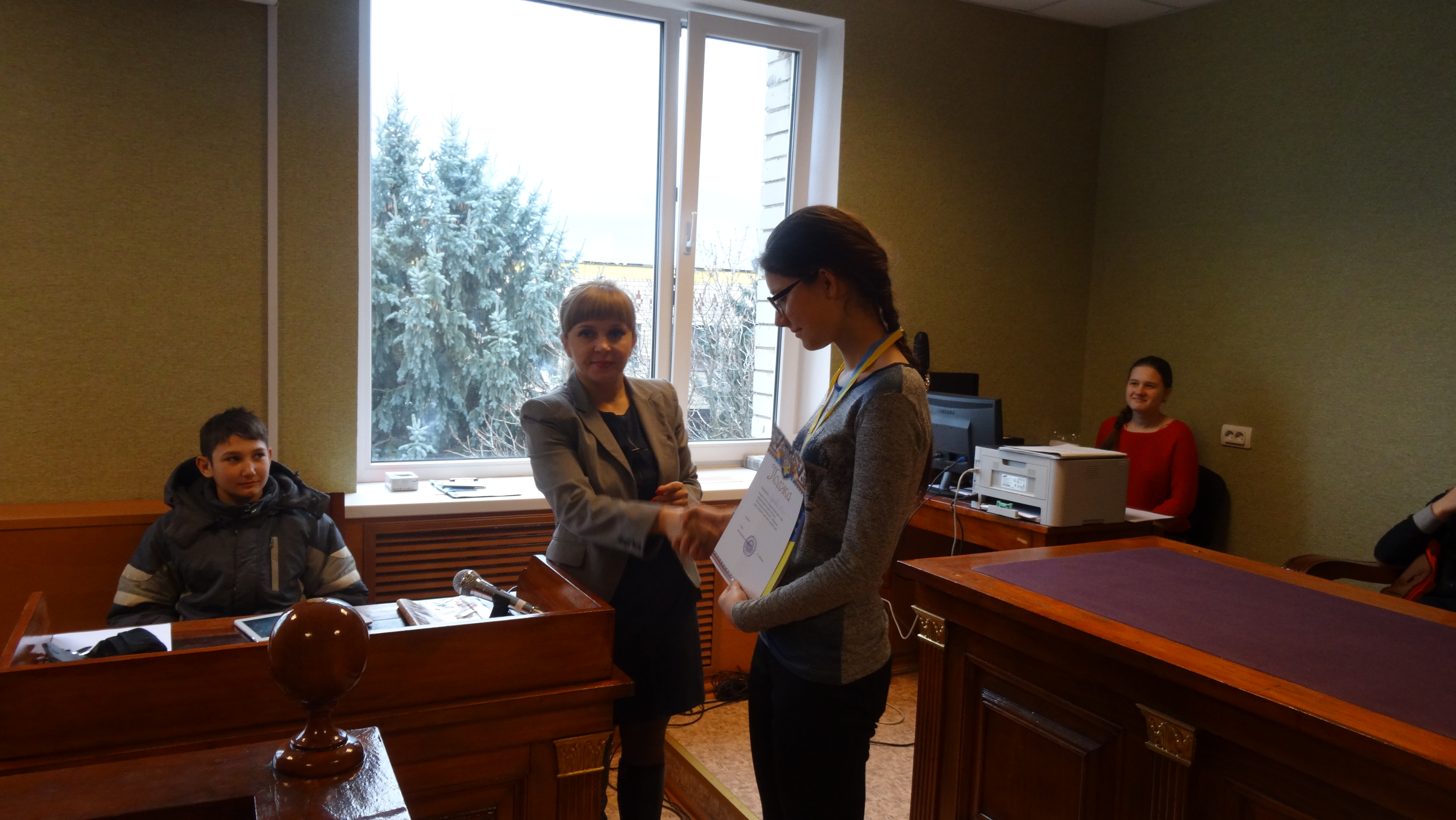 Одним з етапів зустрічі для учнів була проведена правова вікторина «Основи права» де школярі продемонстрували свої набуті знання, та за підсумками вікторини найактивніші та найрозумніші школярі отримали заохочувальні подарунки та подяки від голови суду.