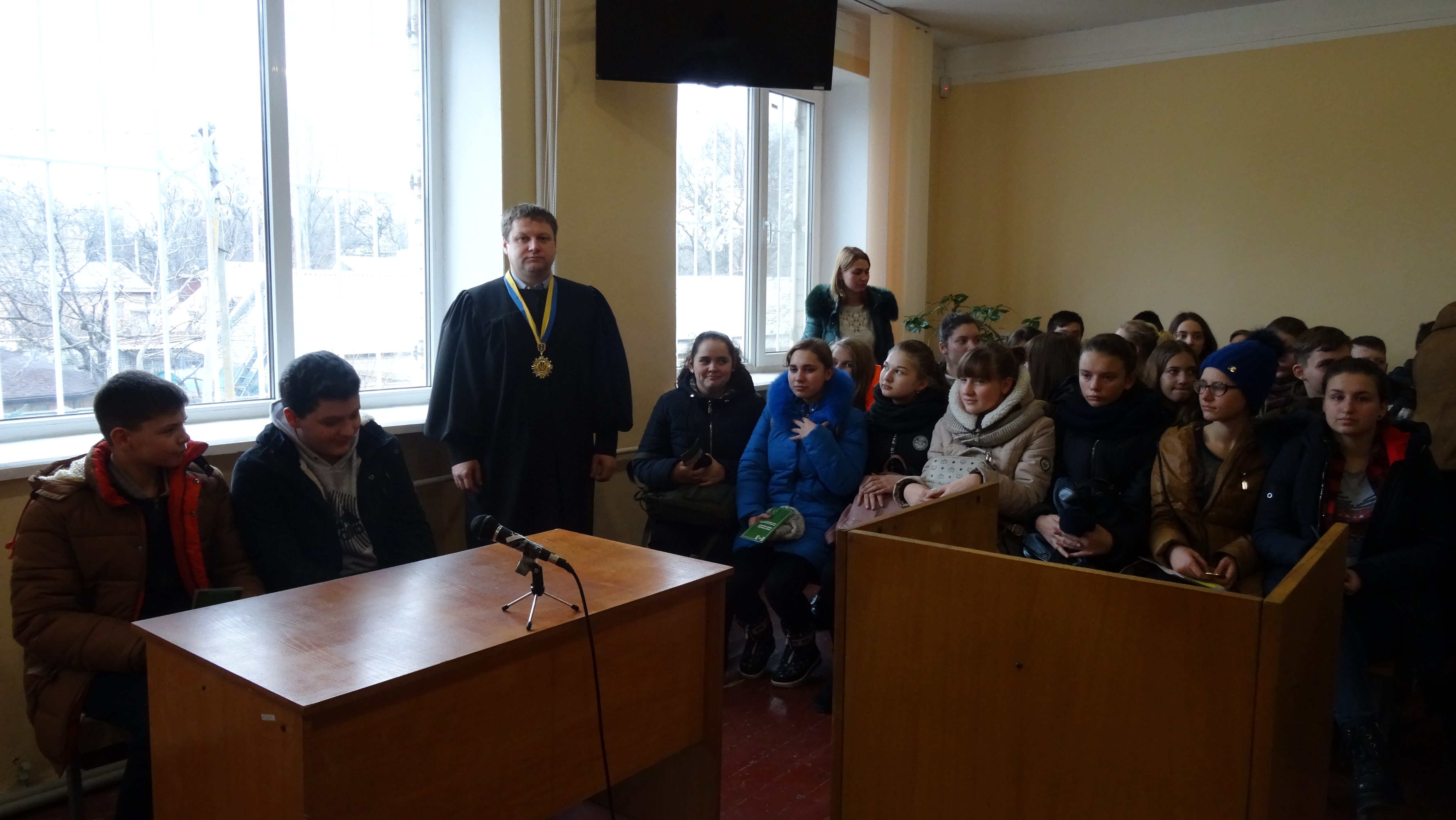 Голова суду Філіппов Є.Є. розповів про безпосередню діяльність Васильківського районного суду, специфіку роботи, категорії справ, які розглядаються судом, про особливості притягнення неповнолітніх до адміністративної та кримінальної відповідальності, відповів на запитання школярів.