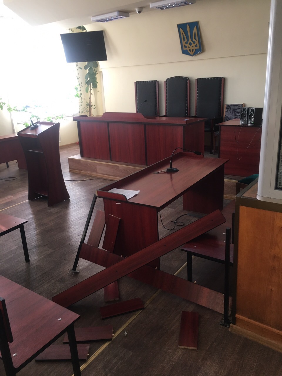 В результаті подій, які відбулися вночі 08.12.2017 року пошкоджено майно суду.