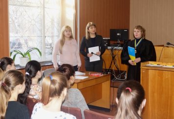 Помічник голови суду Наталія Олегівна Батюта розповіла школярам про роботу помічника судді, яка полягає в пошуку та підготовці необхідної інформації для підготовки розгляду справ та матеріалів, виконання доручень судді пов’язаних із розглядом судової справи, виготовленням запитів, інформаційних листів та підготовку проектів судових рішень.