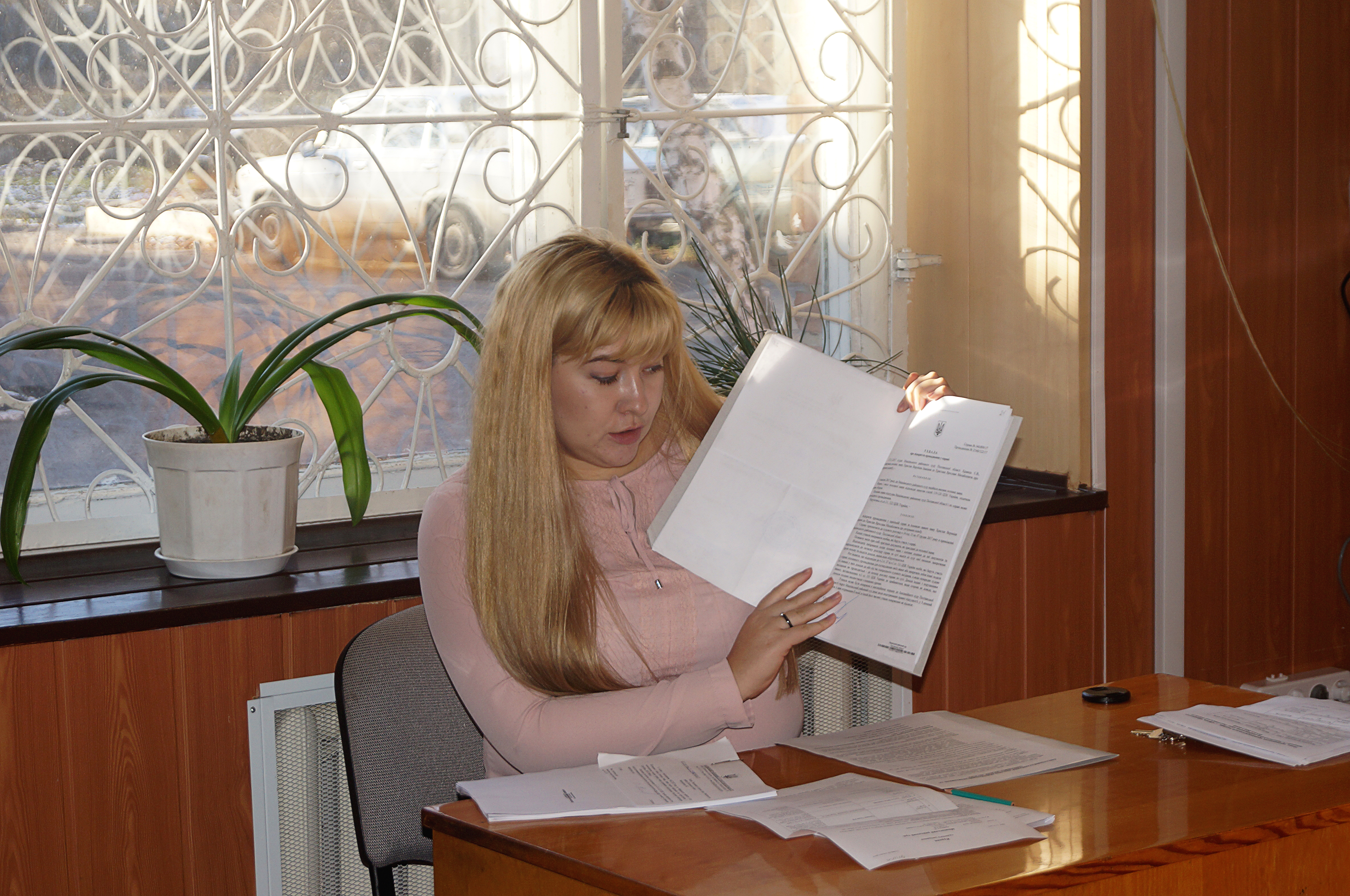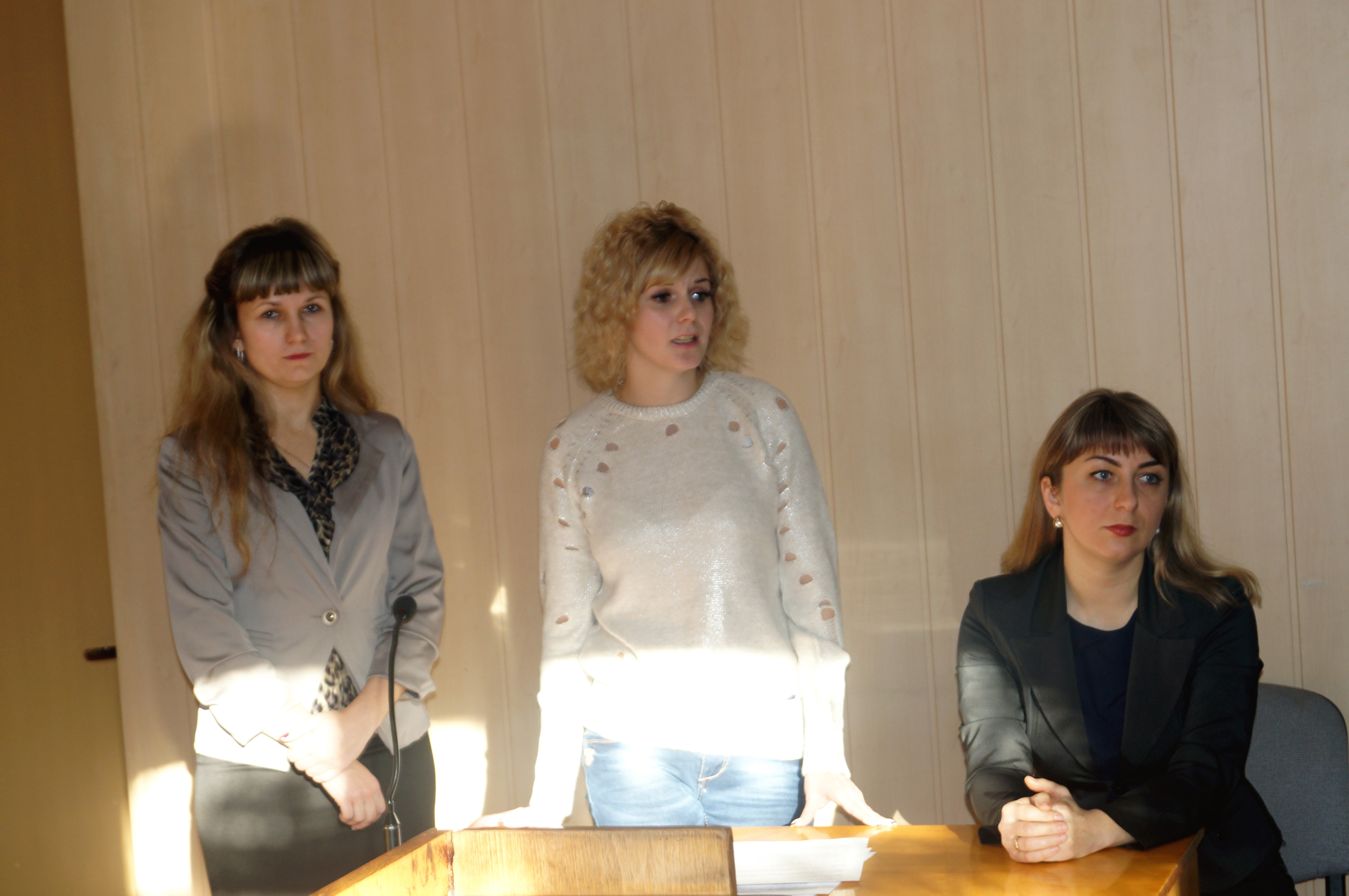 Старший секретар суду Ірина Олександрівна Соколова ознайомила учнів з роботою канцелярії суду, а саме порядком реєстрації документів, їх рухом та порядком роботи з ними в програмі КП «Д-3», порядком реєстрації справ різних категорій, порядком ведення обліково-статистичних карток, порядком звернення до виконання судових рішень. Про те, що в суді функціонує система автоматизованого документообігу КП «Д-3». Справи між суддями розподіляються автоматично – за допомогою спеціальної комп’ютерної програми, яка присвоює номер кожній судовій справі й сама визначає суддю, до якого вона потрапить: з дотриманням принципів черговості, вірогідності та рівності. Працівники суду лише вносять у базу системи дані та відомості, що стосуються конкретної судової справи.