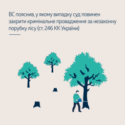 Касаційний кримінальний суд у складі Верховного Суду розглянув касаційну скаргу прокурора, який просив скасувати судові рішення щодо засудженого за незаконну порубку 30 дерев породи сосна, що спричинило істотну шкоду державі на загальну суму 16 840,41 грн (ч. 1 ст. 246 КК України), а кримінальне провадження закрити у звʼязку з декриміналізацією злочину.