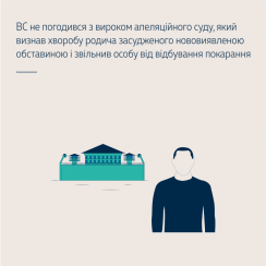 Однак суд апеляційної інстанції, розглядаючи заяви потерпілого та засудженого про перегляд вироку апеляційного суду за нововиявленими обставинами і скасовуючи його в частині призначеного покарання, не зазначив, який саме пункт ч. 2 ст. 459 КПК України він застосовує, не обґрунтував, чому важке захворювання бабусі засудженого є нововиявленою обставиною в розумінні ст. 459 КПК України.