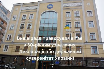 Вища рада правосуддя вітає з 30-річчям ухвалення Декларації про державний суверенітет України!