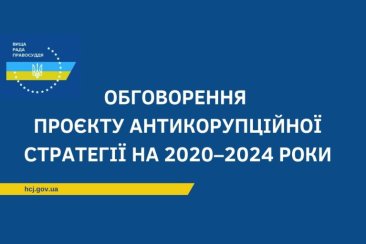 31 липня 2020 року о 10:00 відбудеться обговорення проєкту Антикорупційної стратегії на 2020–2024 роки, розробленого Національним агентством з питань запобігання корупції. У заході, організованому Вищою радою правосуддя в режимі відеоконференції, візьмуть участь судді Верховного Суду України, вищих спеціалізованих судів, апеляційних та місцевих судів, представники Ради суддів України, Національної школи суддів України, суддівських асоціацій, суддівської та професійної спільноти. Посилання на захід у режимі відеоконференції буде надано пізніше.