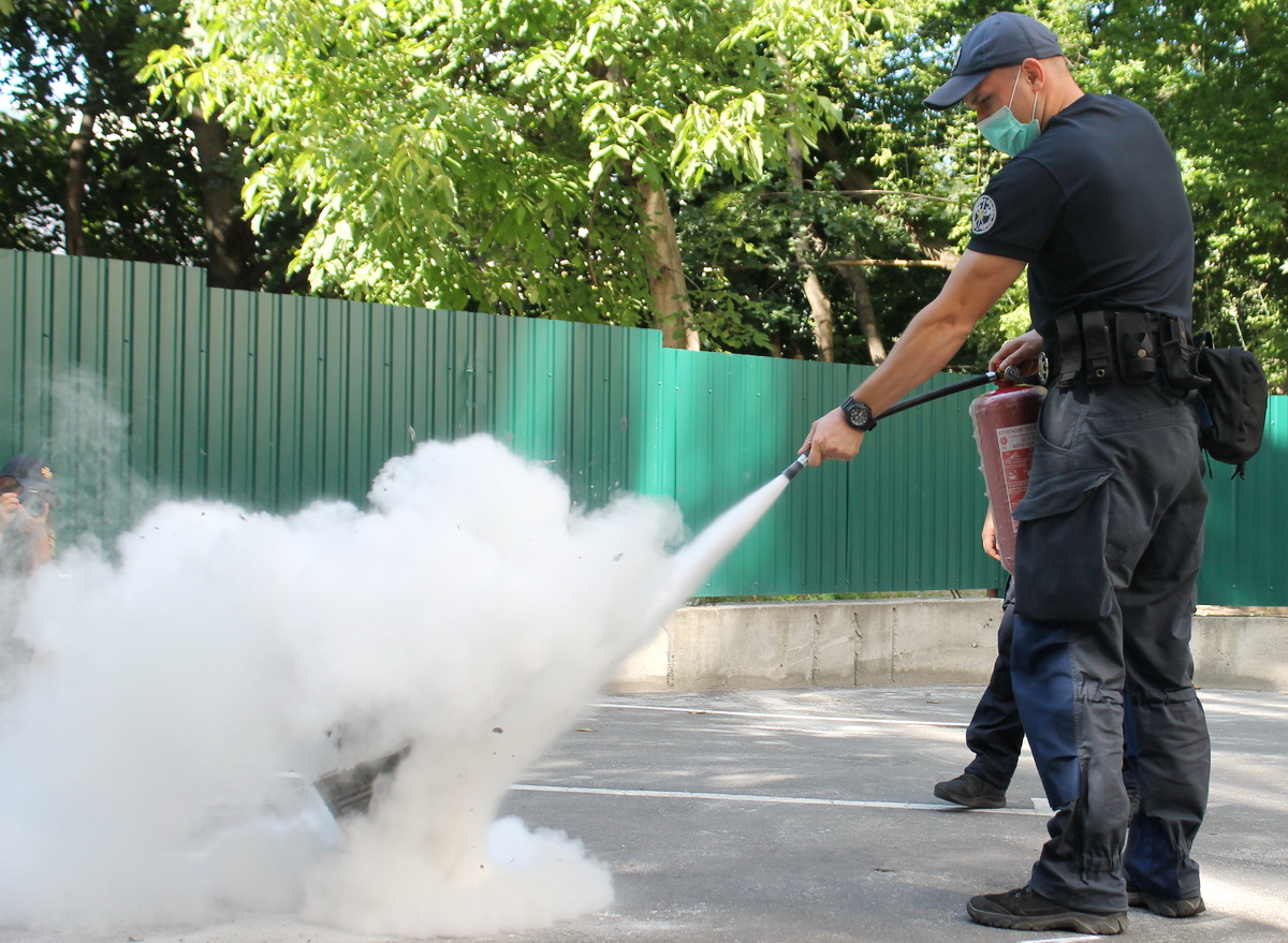 Також співробітники Служби судової охорони навчилися власноручно ліквідувати невеликі локальні займання, а бійці ДСНС продемонстрували, як працюють і як користуватися вогнегасниками різного типу.