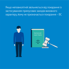 Проаналізувавши особливості застосування звільнення особи від покарання стосовно неповнолітніх правопорушників, закріплені в розд. ХV Загальної частини КК України, ККС ВС зазначив, що з метою забезпечення особливих потреб цих осіб, які обумовлені недостатністю інтелектуального розвитку, життєвого досвіду, соціально-психологічними особливостями особи, законодавець у положеннях статей 97, 105, 106 КК України передбачив можливість заміни кримінальної відповідальності або покарання примусовими заходами виховного характеру.