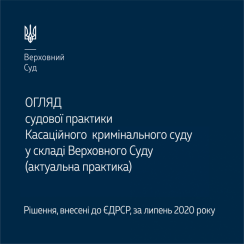 До огляду вміщено низку важливих правових позицій Касаційного кримінального суду Верховного Суду, висловлених під час розгляду кримінальних проваджень у липні 2020 року, зокрема щодо: