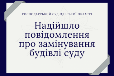 4 березня 2021 року Господарський суд Одеської області інформує про те, що надійшло повідомлення про замінування будівлі суду.