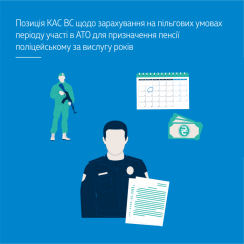 Верховний Суд у складі суддів об’єднаної палати Касаційного адміністративного суду розглянув у касаційному порядку адміністративну справу, у якій позивач (колишній поліцейський) оскаржив дії Департаменту захисту економіки Національної поліції України щодо відмови в зарахуванні на пільгових умовах періоду участі в антитерористичній операції для призначення пенсії поліцейському за вислугу років.