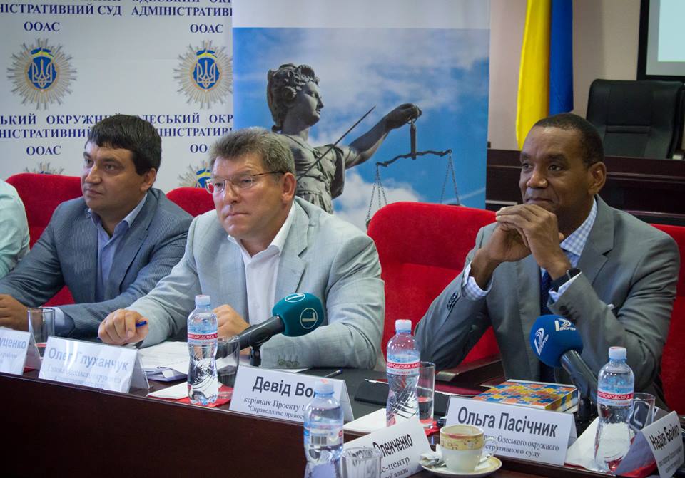 У роботі круглого столу взяли участь керівник Проекту USAID "Справедливе правосуддя" Девід Вон, голова Одеського окружного адміністративного суду Олег Глуханчук, голова правління ГО "Спілка юристів Одеської області" Олександр Рябець, представник Прес-центру судової влади Наталія Оленченко, начальник ТУ ДСА України в Одеській області Володимир Куценко, керівник апарату Одеського окружного адміністративного суду Ольга Пасічник, представники судів міста Одеси та інших регіонів, а також представники громадських організацій та правозахисники.