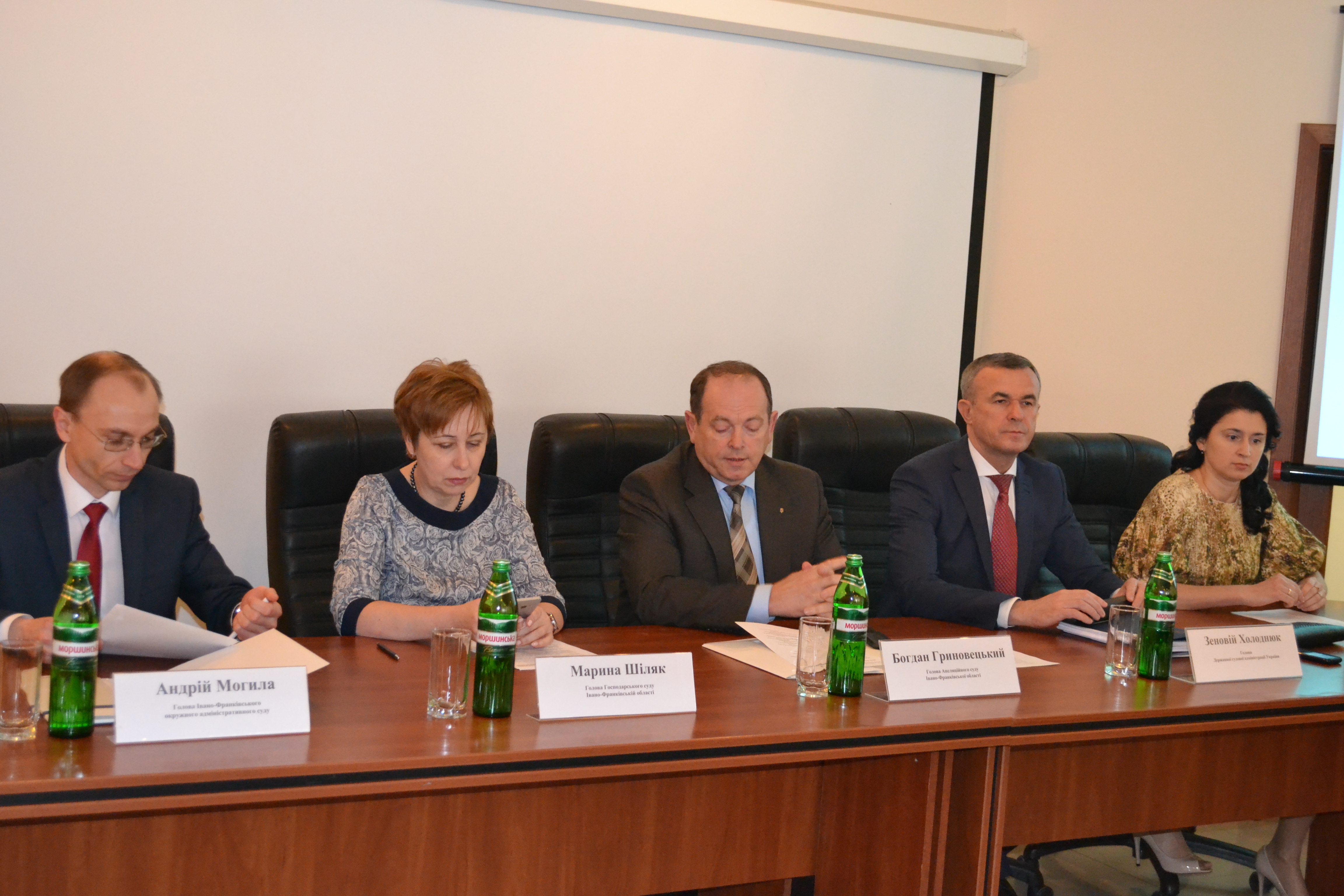 У нараді "Підсумки організаційного забезпечення судів Івано-Франківської області. Перспективи та розвиток судової гілки влади" взяли участь голова апеляційного суду Івано-Франківської області – Богдан Гриновецький, голова Івано-Франківського окружного адміністративного суду – Андрій Могила, голова господарського суду Івано-Франківської області – Марина Шіляк, начальник територіального управління – Оксана Рибак, голови та керівники апаратів місцевих загальних судів і працівники територіального управління.