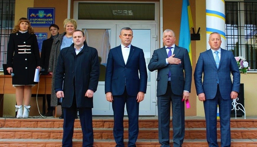 Символічне перерізання святкової стрічки до будівлі за адресою: вул. Миру, 2а, в Дубровиці, де відтепер функціонуватиме Дубровицький районний суд, відбулося завдяки проведеним ремонтним роботам, що дозволить забезпечити належні умови для відвідувачів суду та роботи суддів і працівників апарату суду, поліпшити доступність правосуддя для кожної особи.