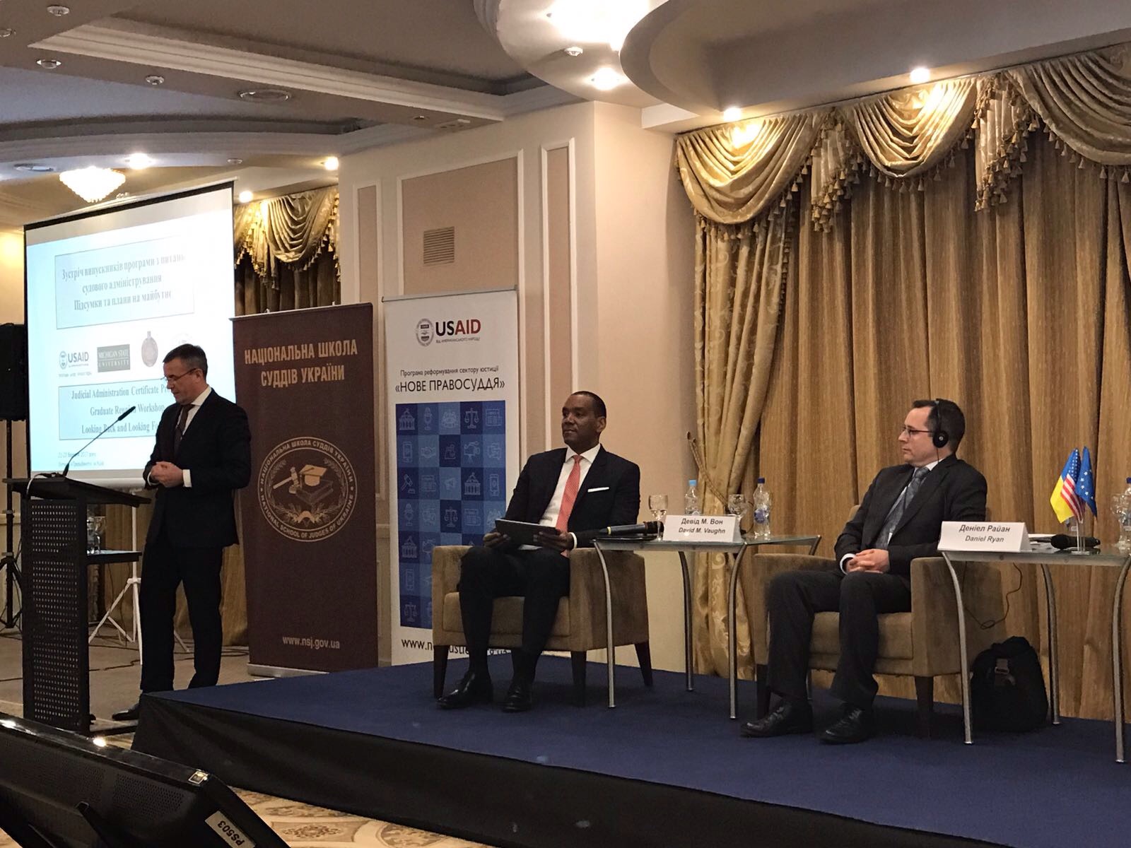 Відкриваючи зібрання, заступник Директора Відділу сприяння розвитку демократії та врядування Регіональної Місії USAID в Україні, Білорусі та Молдові Деніел Райан відзначив, що судові адміністратори мають вплив на решту суспільства, адже саме вони полегшують доступ громадян до судових установ, сприяють налагодженню комунікацій судів та суспільства.