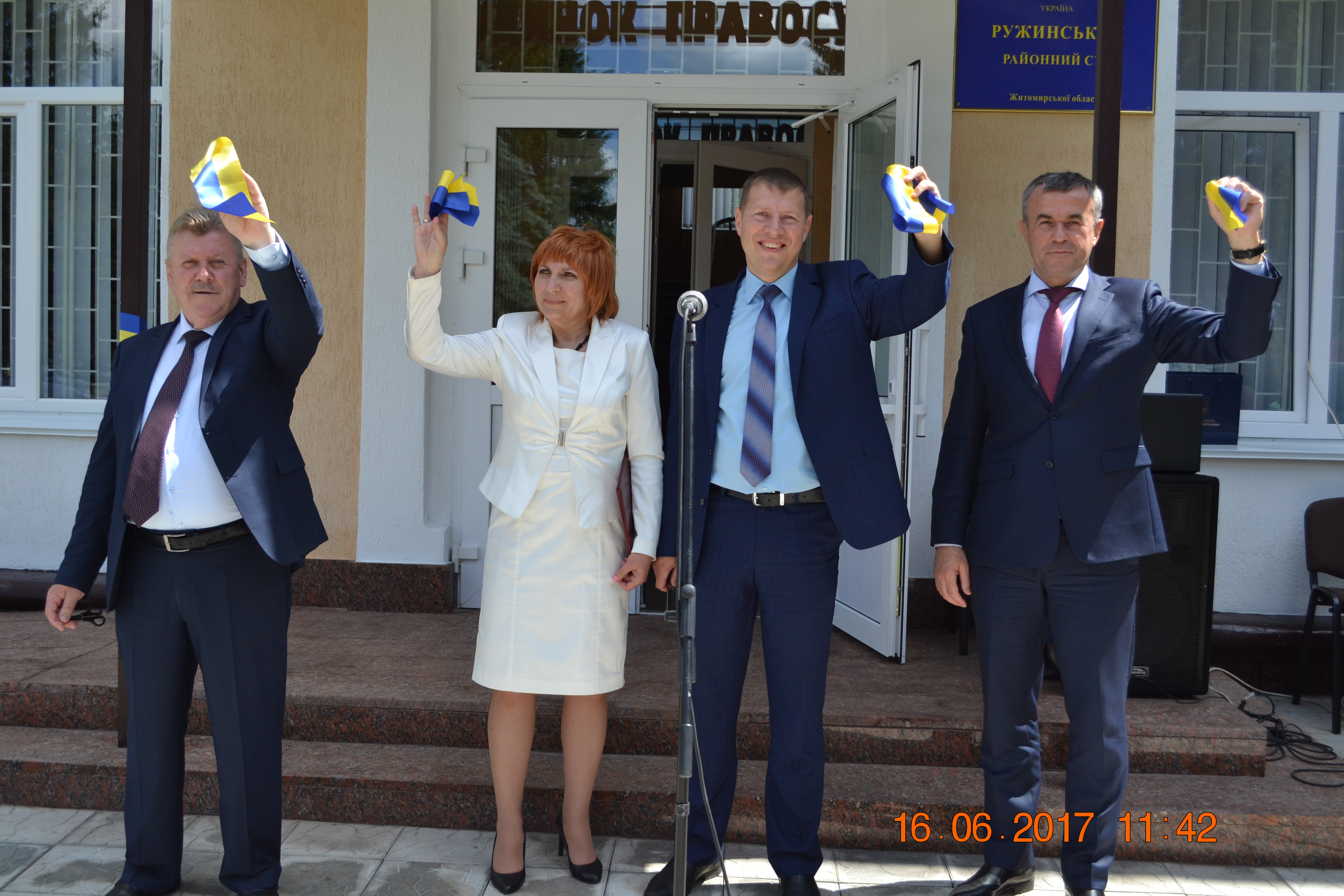 Після завершення ремонтних робіт 16 червня 2017 року у смт. Ружин відбулося урочисте відкриття приміщення Ружинського районного суду Житомирської області.